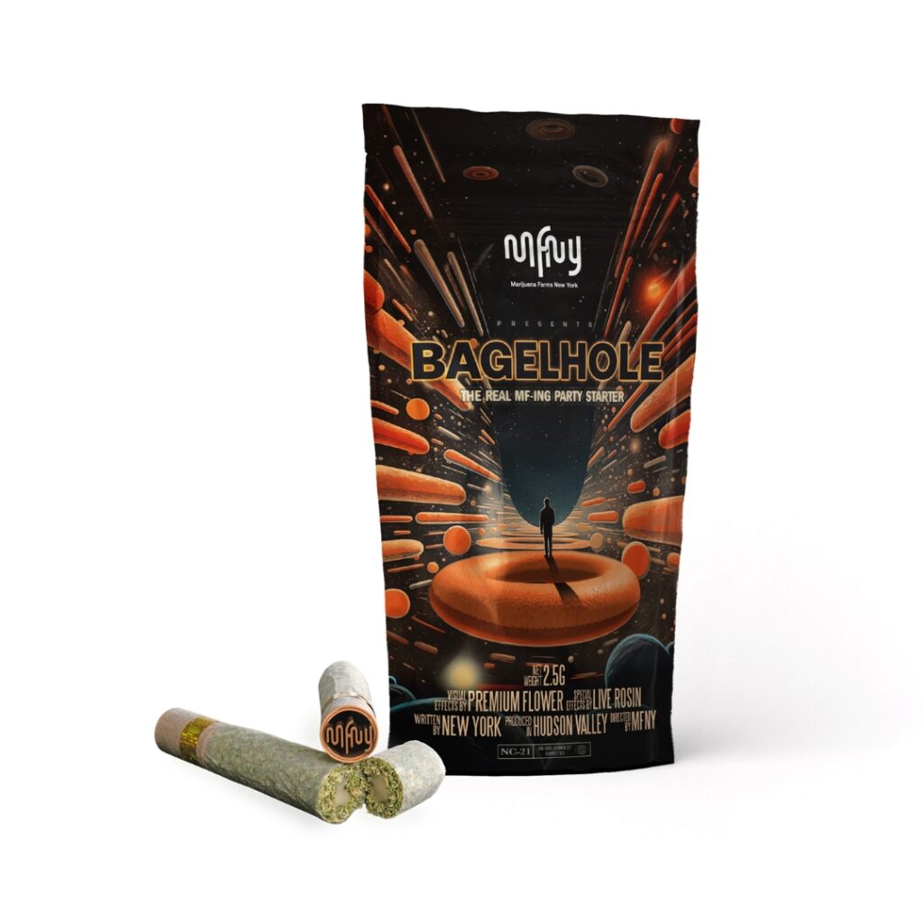 We’ve been calling them hash holes and/or donuts—potent pre-rolls that are perfect for sharing with a group. But at MFNY, they call theirs the BagelHole, a nod to New York’s iconic bagels. Each BagelHole features 1.5 grams of premium MFNY flower rolled into a perfectly crafted XL blunt, with a 0.5-gram cylinder of MFNY’s premium Live Rosin extract running down the center—just like the cream cheese in a freshly baked bagel. Every time they unleash a BagelHole drop, it features different flower and live rosin combinations, so check our menu regularly for updates!